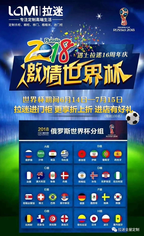 拉迷作為這場全球盛典的冠名商......的忠實觀眾,在世界杯期間,我們用“進門”柜,為每一支球隊加油!