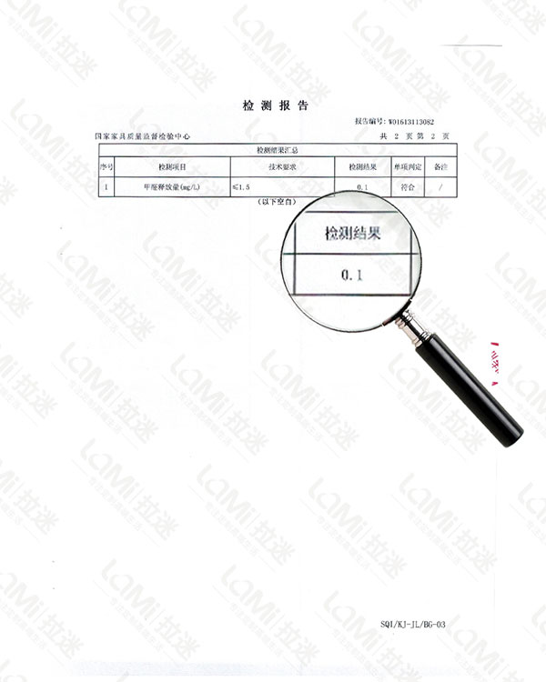 那么衣柜用什么板材好呢?其實(shí)用實(shí)木顆粒板做的衣柜就已經(jīng)很環(huán)保了。完全達(dá)到國(guó)家的標(biāo)準(zhǔn)了。但如果您家里有孕婦或者小孩,建議使用傳說(shuō)中的甲醛含量≤0.1mg/L的進(jìn)口的生態(tài)板,這種板材屬于即裝即住的板材。目前定制家具里,只有2家有這類的板材,一家是上海拉迷家具的澳洲生態(tài)原木板,一家是廣東好萊客的原木生態(tài)板。下面大家來(lái)看下傳說(shuō)中的≤0.1mg/L檢測(cè)報(bào)告: