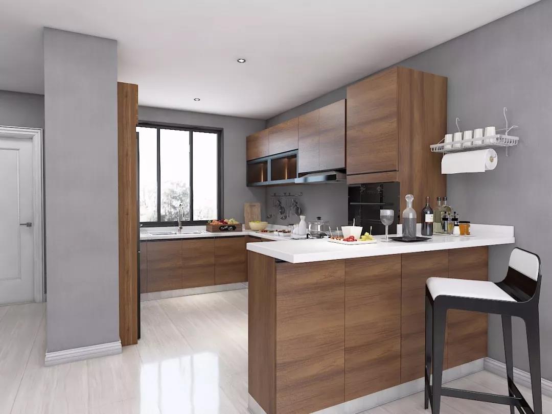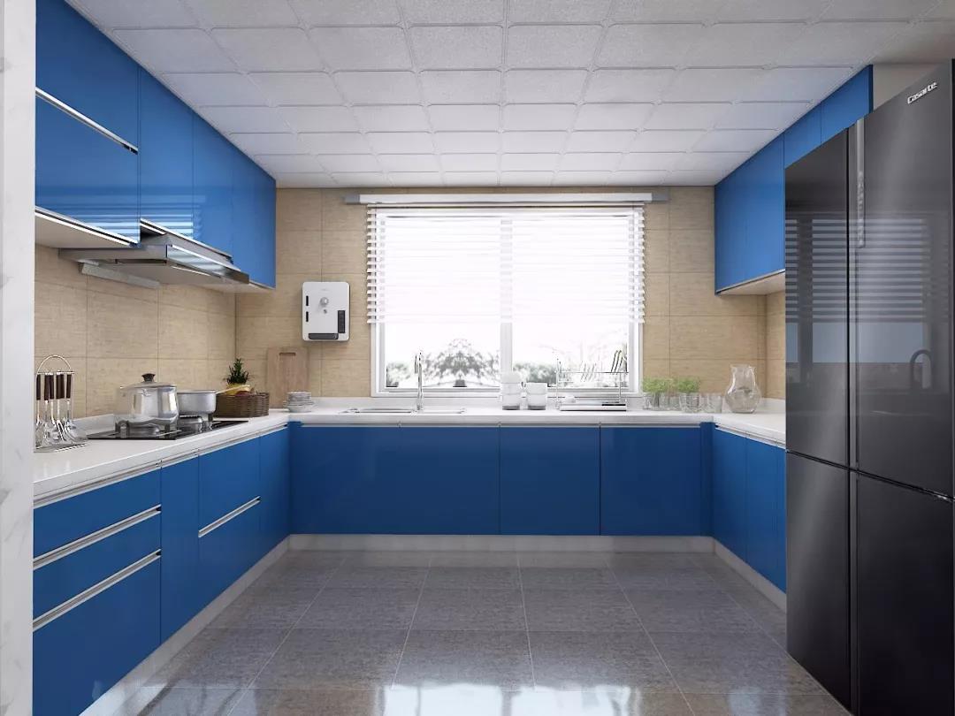 除了灰色和白色,其他色系的櫥柜也很受歡迎,比如在夏日帶來清涼感覺的藍色,舒適溫馨的淡黃色,清新自然的胡桃木色。可以用簡約的軟裝裝飾效果,呈現出一個個時尚廚房。