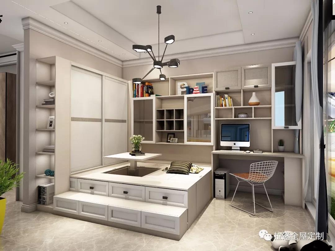 年輕人的臥室有個榻榻米,特別是有小孩的家庭,尤其合適。孩子總愛粘著爸爸媽媽,也喜歡在地上爬滾,榻榻米床高度安全,隨寶寶自由去玩去鬧。
