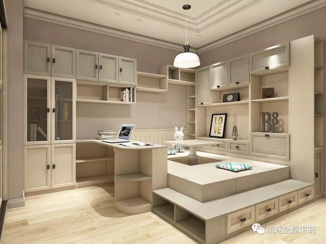 很多人說羨慕有個書房的人,但這話不全對,他們應該羨慕那些在書房裝了榻榻米的人。一本正經地辦公學習難免枯燥乏味,犯困之時有張小床休憩一下,彈一曲吉他或看一則趣文,都不錯。
