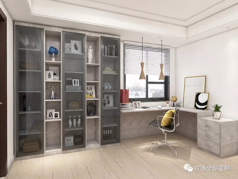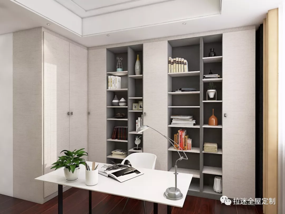 對(duì)于小戶型來說,一體化書桌書柜組合設(shè)計(jì)能夠最大限度地節(jié)省室內(nèi)空間。因?yàn)闀拦窠M合即使是一個(gè)角落,都能安排得當(dāng),不會(huì)占用太多面積。