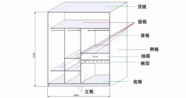 投影面積:不管衣柜內部格局如何設計,隔板多少,衣柜投影在墻上的面積乘以單價就是板材總價。