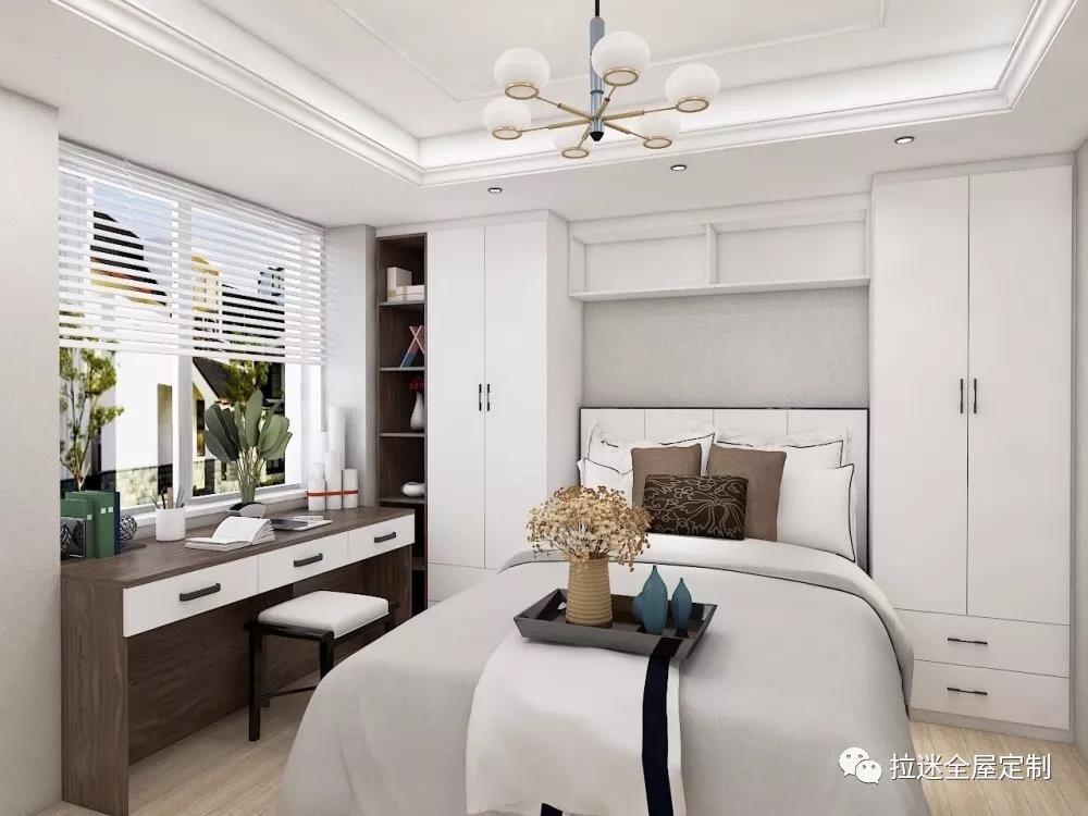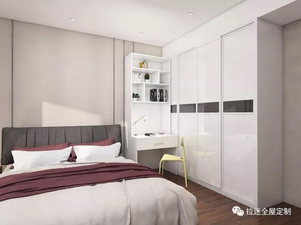 那么就可以把書(shū)桌或電視柜與衣柜組合起來(lái)設(shè)計(jì),在小小的臥室里實(shí)現(xiàn)更多的功能。